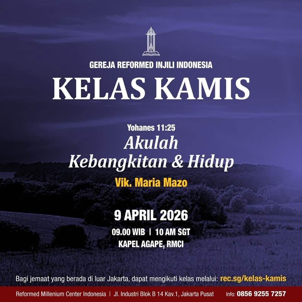 Kelas Kamis bisa diikuti secara live streaming melalui Zoom Meeting (meeting room dibuka mulai pk 8.45am WIB/pk 9.45am waktu Singapura).
